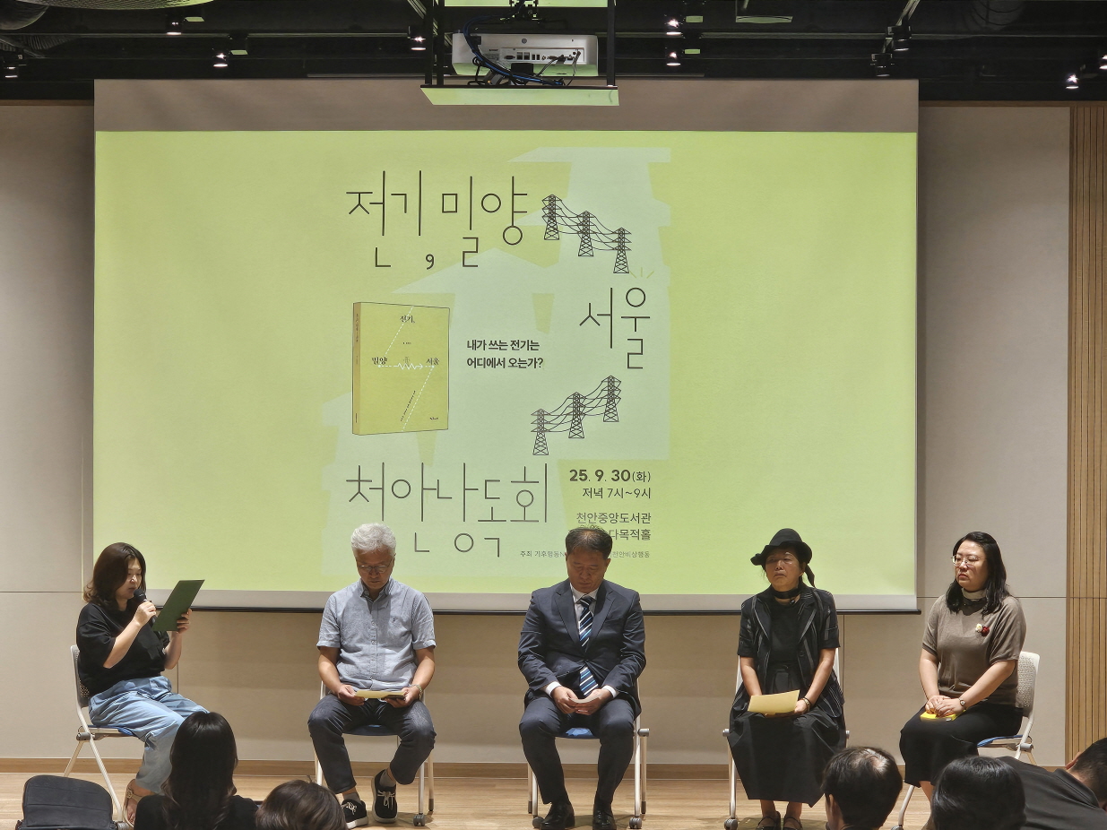 충남에서 가장 큰 도시인 천안시의 에너지자립률은 7%로 전국 최하위입니다. 결국 다른 지역에서 생산한 전기를 편하게 사용하고 있는 것이죠. 내가 쓰는 전기가 어디에서 오는지, [전기, 밀양-서울] in 천안낭독회에서 기후위기와 에너지정의에 대한 이야기를 나눴습니다.